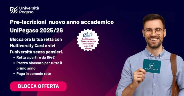 La Promo UniPegaso Multiversity Card + Eipass scade il 30 giugno 2025: compila oggi stesso il form per ricevere informazioni dettagliate e bloccare subito la tua retta.