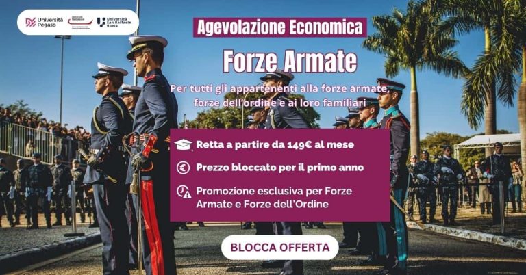 UniPegaso, UniMercatorum e UniSanRaffaele offrono due tipologie di promo dedicate esclusivamente al personale delle Forze Armate, Forze dell’Ordine e ai loro familiari: